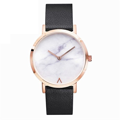-. Title : Souarts Womens Black Artificial Leather Band Rose Marble Quartz Analog Wrist Watch 23cm