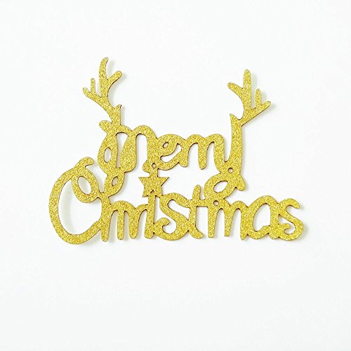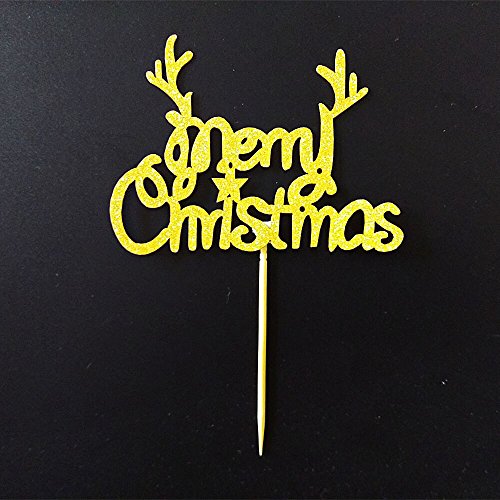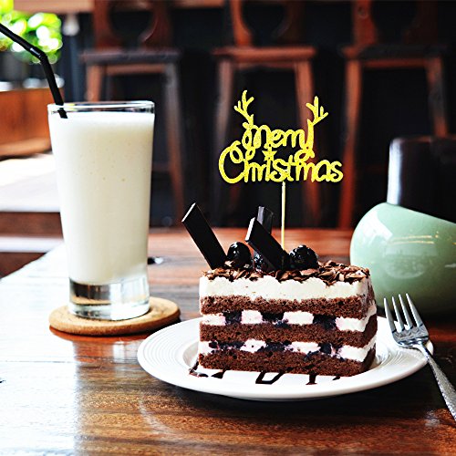 JANOU Merry Christmas Gold Gliter Cake Topper Cupcake Picks for Christmas Party Decoration Pack 20pcs