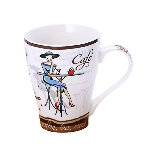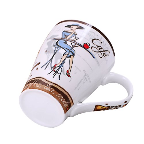 -. Title : Fashion Women Coffee Mug without Lid, 12 OZ Ceramic Tea Cup & Foldable Spoon Set, Birthday Valentines Thankgiving Day Christmas Gift for Girls Women