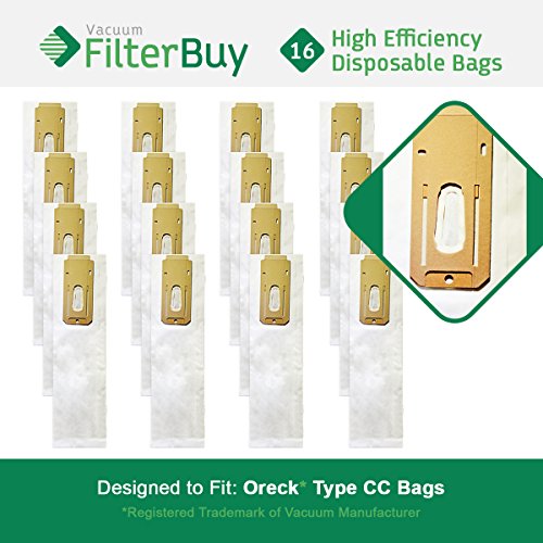 16 - Oreck Type CC Vacuum Bags. Oreck Part #'s CCPK8 & CCPK8DW. Designed by FilterBuy to replace Oreck CC Paper Vacuum Bags