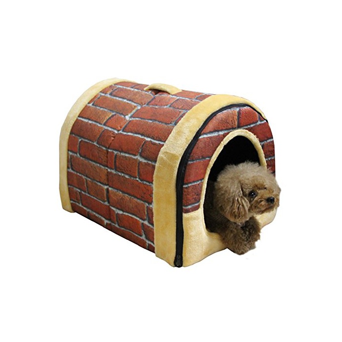 Novcom(노브 COM) 애완동물 하우스 개집 돔형 브라운 벽돌 실내복 접는식 소형견 대형 개와 고양이 애완동물 용품 보온 방한 방풍 vet 소파 (M,벽돌)