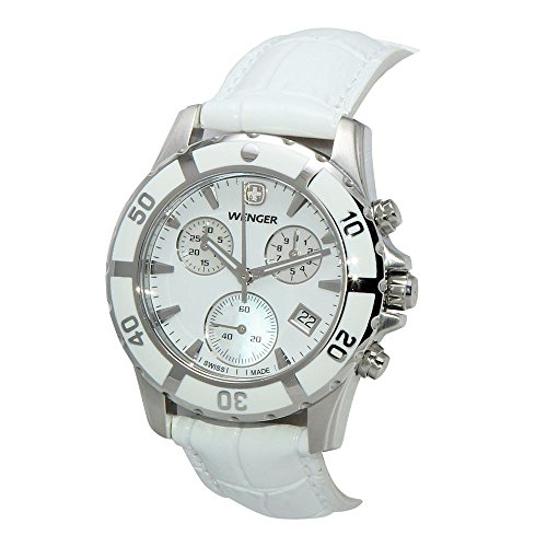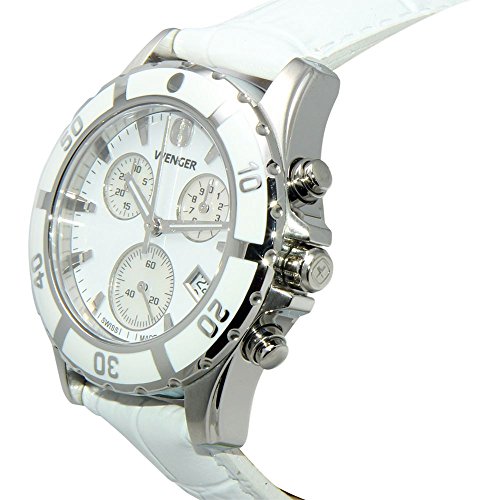 -. Title : LADIES 36MM WENGER 70748 WHITE MOP DIAL CERAMIC BEZEL CHRONOGRAPH WATCH