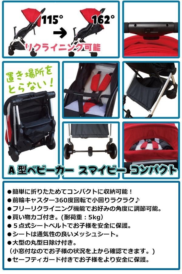 | 乗り心地抜群で赤ちゃんごきげん!!シートは通気性の良いメッシュシート仕様。5点式シートベルトでお子様を安全に保護します。また、操作性が良く、コンパクトに折りたためるのも魅力的!! |