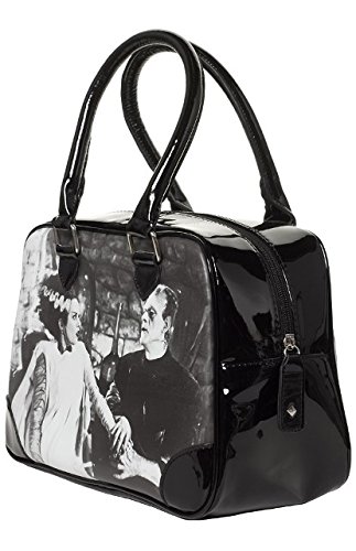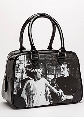 Studio : Rock Rebel Publisher : Rock Rebel Product Description Black and White Universal Monsters Frankenstein and Bride Purse "We Belong Dead". This bowler-style bag features the photo of Frankenstein monster and his bride! Shiny Black vinyl accents the top. Design with Frankenstein and Bride, Green and black striped interior lining features a zelcro side closure pocket. Made of heavy duty PVC like material. The handles are black patent as well. There is a velcro patch on the inside pocket. Zipper top. The design is printed on both sides of the bag. This purse measures 11 inches in length 8 inches in height and 5 inches in depth. *This is the new version of the green glitter purse* See additional pictures for more detail. Find more Gothic Purses, Coffin Purses, Gothic Messenger Bags and More at Mystic Crypt! Model: UMHB3WDBW 0