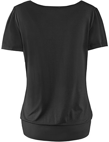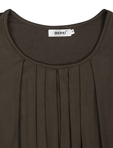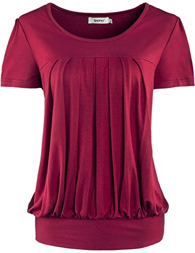 -. Title : Bepei Women Tops Scoop Neck Short-Sleeves Front Pleated Tunic
