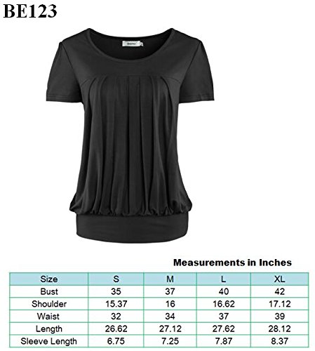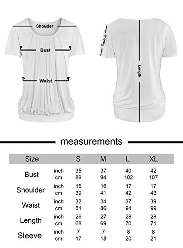 -. Feature : Fashion forward, the design decision for Bepei Scoop Neck Tunic Top always keeps in step with the times. This style pleating front and end in a fitted waistband at the bottom, the soft breathable fabric makes the blouse comfortable that can be wear with leggings, trousers, jeans, pencil skirts, slim pants etc£¬Trendy and elegant item which is suitable for any occasion / Make Yourself Amazing, Bepei women tops designers are pleated into shirt sleeves that makes your arm looks more thin and the unique drape front can cover the belly. Elastic band on the bottom of the t-shirt that dresses with nipped waists. Let you became dandyism, elegant lady / Effortless beauty and memorable style, The Front Pleated design and RAYON materials make the tee really unique and practical. Bepei Short sleeve Tops can wear different seasons, summer you can just wear this short sleeve that cool! Spring and Autumn you can wear with small suit, seven-tenths of sleeve business suit or leather; Winter you can wear with coat and down jacket. Are all very good, pure color let a person feel very attractive / Materials: 95% RAYON 5% SPANDEX, This good materials have highly stretchable and comfortable, Bepei Women clothing tops machine washable (Recommended Hand Wash), Hand Wash cold/No bleach/Lay Flat Dry / Excellent After-sales Service,Blouse prime FBA shipping fastest can delivery one day. By the way, before you make order, please reference the below size chart, or you can contact us in anytime; we will reply as soon as possible and not exceed 24 hours