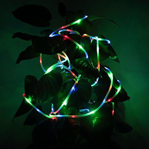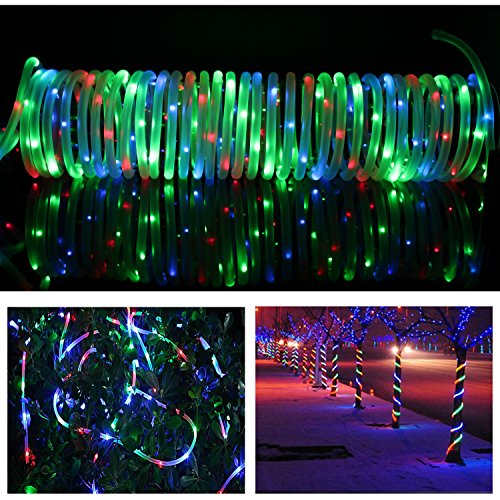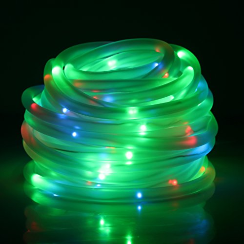 MEIKEE 33ft Dimmable Solar Rope Lights,100 LED,8 Lighting Modes, Light Sensor, Waterproof, Ideal for Decorations Christmas,Gardens, Lawn, Patio, Weddings, Parties (RGB(Red,Green,Blue))