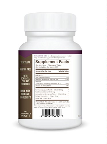 -. Feature : More than just vitamin C for immune system support / DMG with Zinc, Echinacea, Vitamin C, and Maitake for enhanced immune system support / 180 delicious chewable tablets / Gluten free, vegetarian, made with non-gmo ingredients / Packaging may vary