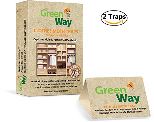 Greenway clothes moth traps are an alternative to pesticides and moth balls. Non-toxic, ready-to-use, long-lasting, child and pet safe. Captures male and female clothes moths.