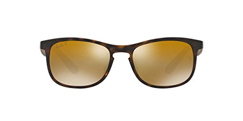 Men's square shaped acetate frame in Havana. Super sun protective and edgy bronze polar mirror gold lens with option to RX.