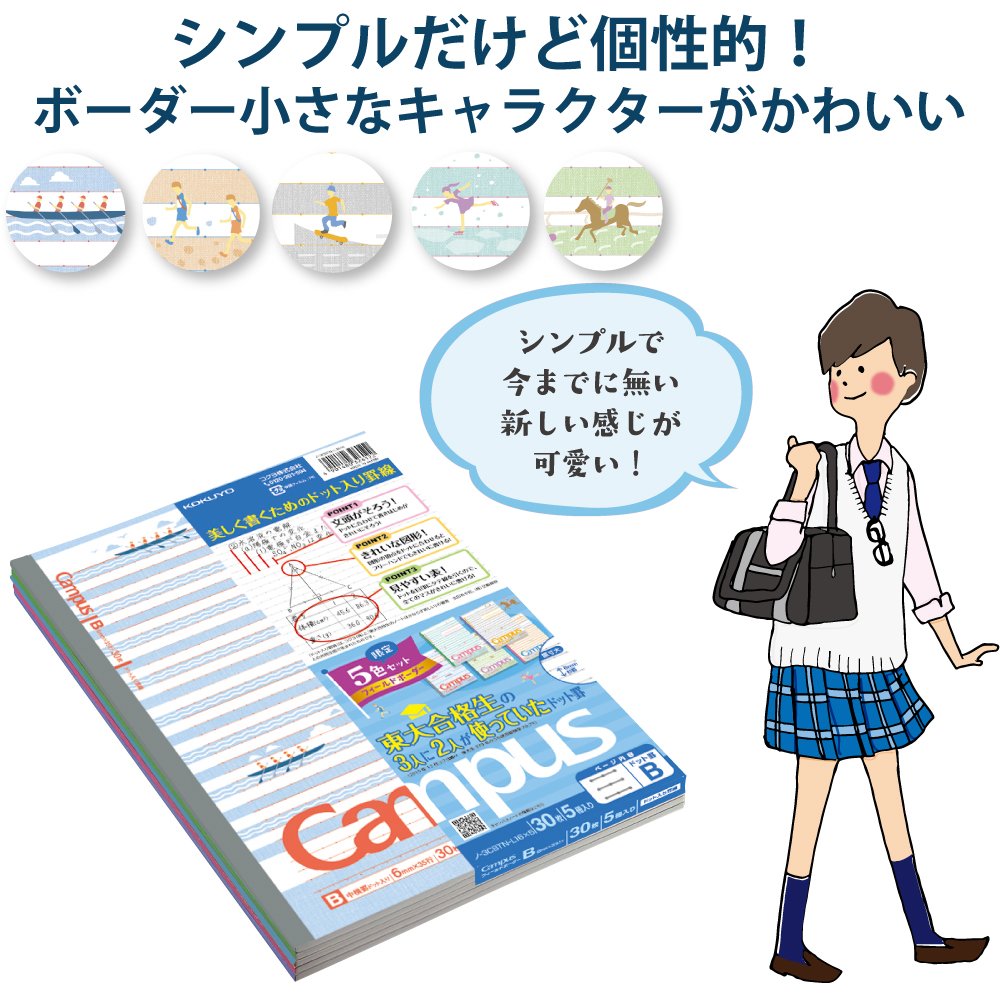 In the border pattern, the motif of a small character that enjoys sports is a limited Campus Note 5 Pack of Design.
