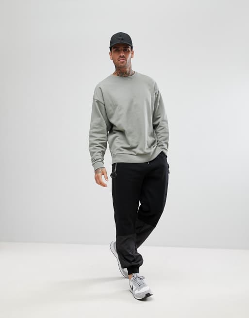ASOS Drop Crotch Joggers With Zip Pockets And Woven Panels