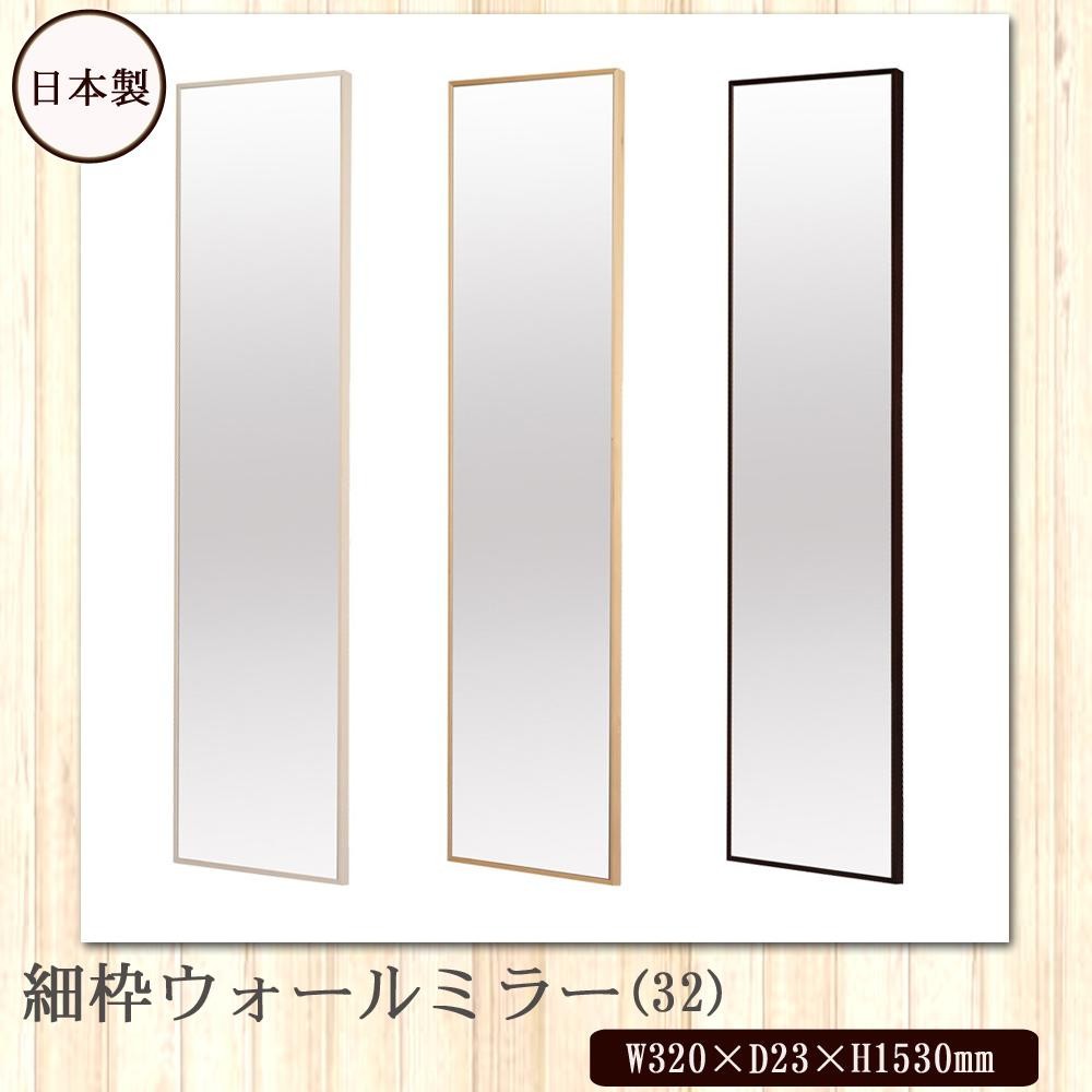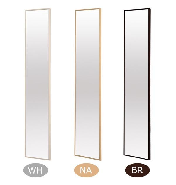 | 木目が美しい天然のツガ材を使用した、細枠フレームのウォールミラーです。ミラー面が広く感じられるので、圧迫感がなく、お部屋を広く見せてくれる効果があります。 |