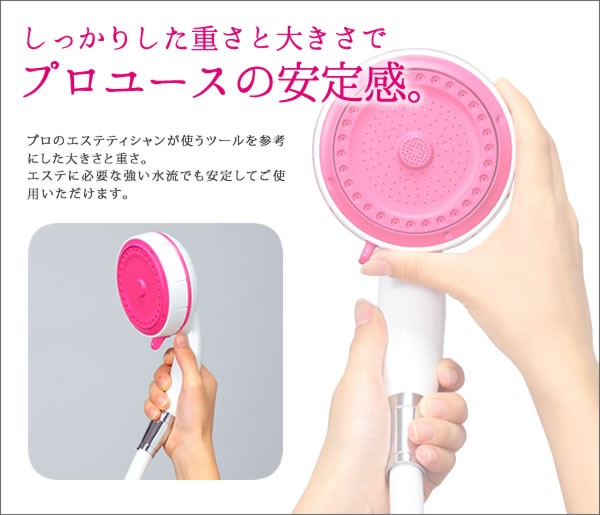 | おうちのお風呂で美肌ケアとスカルプケアができるシャワーヘッドです。エステティシャンのハンドテクニックをもとに独自の水流を開発しました。エステの専門家が監修した、お風呂に貼れるシャワーエステレシピ&DVD付き!! |