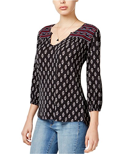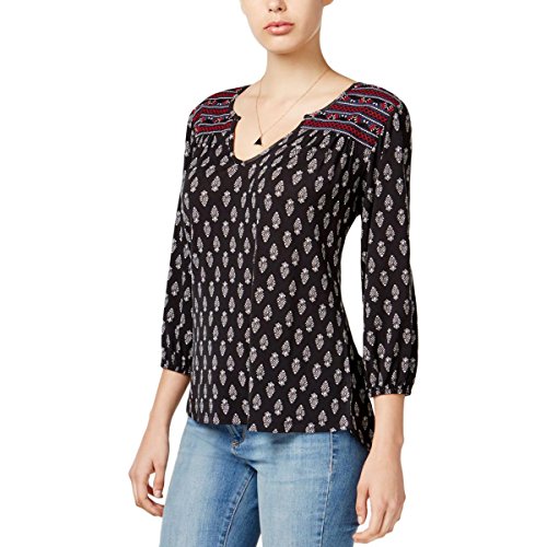 Product DescriptionPeasant 3/4 sleeve anabella tee in black with floral print0