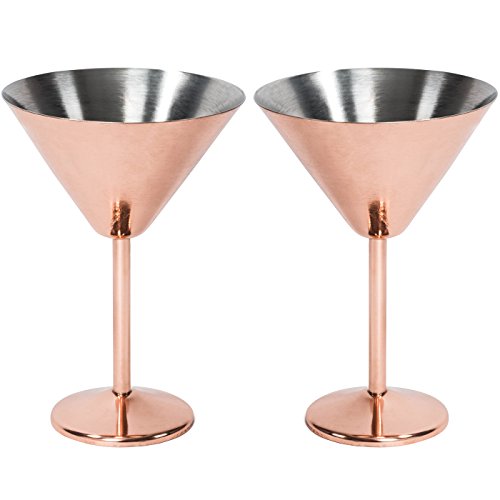 (Colleta Home)/Kitchen Dining/Bar Tools Glasses/DIRECT FROM USA/Martini Glasses Shaker Set - 2 Large Stainless Steel Martini Glasses Cocktail Shaker - Copp...