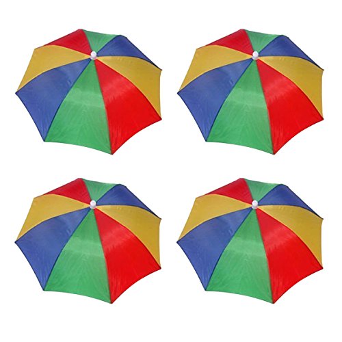 4 Pack Umbrella Hat Cap Hands Free with Head Strap for Sun Rain