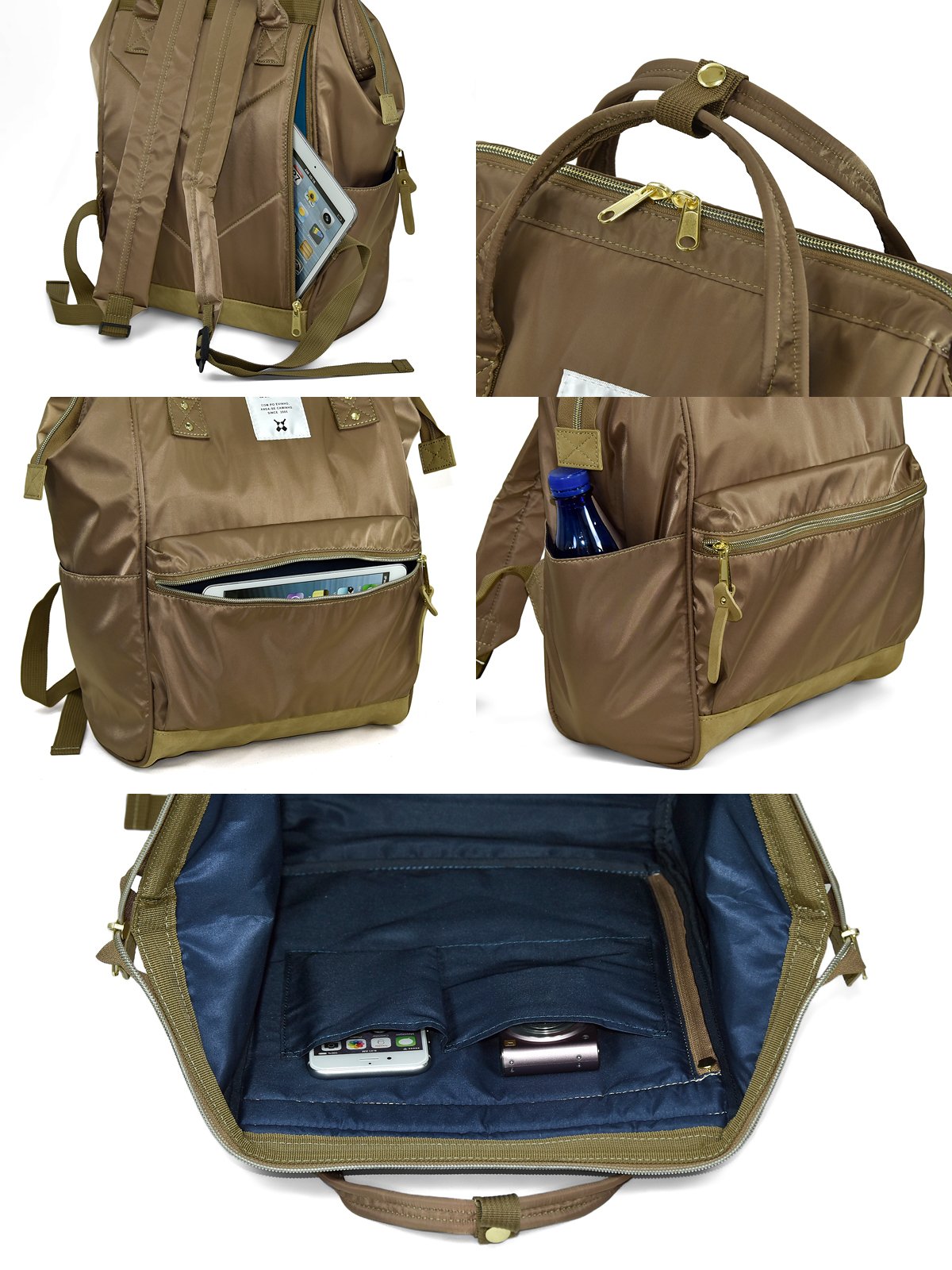 The inside of the main body is two open pockets, the front is a gusset There are zipper pockets and storage power are excellent.