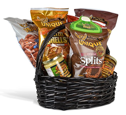 - Includes individual bags of our Original Splits, Extra Dark Splits, Pretzel Shells, Honey Mustard Shells and Buffalo Shells as well as jars of Sharp German and Honey Mustard Dips