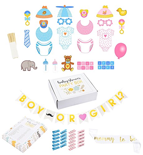 Gender Reveal Party Supplies - Baby Reveal Party Decorations, Unisex Baby Shower Props with Banner, Game, Photo Booth Props, Assorted Colors