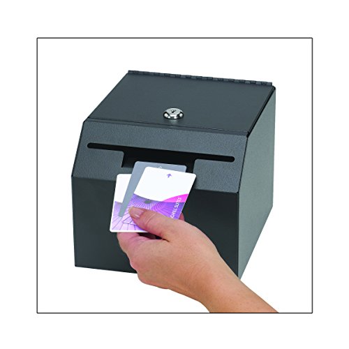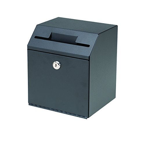 Durable steel construction with a scratch- and chip-resistant finish^Drop slot accepts larger key FOBs while providing anti-fishing deterrence^Multi-orientation design enables front or top opening door to suit user needs^Mounts to vertical wall studs with diamond shaped hole pattern^Non-slip, non-mar feet will not scratch surfaces