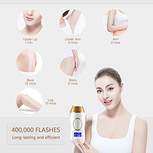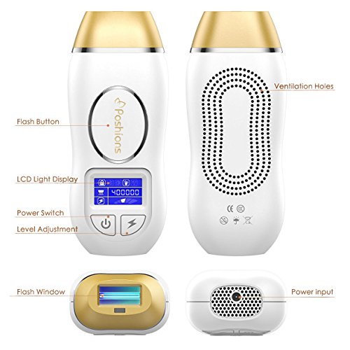 IPL Hair Removal System, Poshions 400,000 Flashes LCD Screen IPL Painless Face & Body Hair Remover with Goggles for Home Use