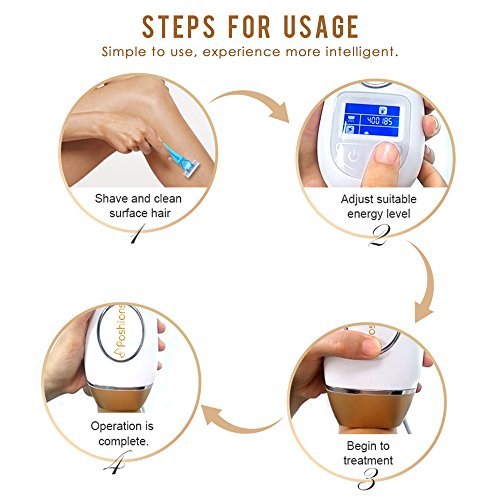 😍Adjustable 5 Levels of Energy: Customers can choose the level according to your needs. The higher the level, the better of Hair Removal effect. Recommed 1st level for beginners. Press the button for 3 seconds to automatically activate Poshions Home Hair Removal Device.