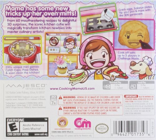 -. Feature : Use the stylus as your ultimate cooking utensil to chop, slice, stir, knead, roll, toss and more in more than 200 unique mini games. / Use the 3DS gyroscope to cook in brand new ways: crack eggs, balance plates of food, flip meals in a pan, grate cheese and more. / Watch kitchen mishaps unfold in comedic 3D events and work to save your mistakes with additional activities on top of each recipe step. / Create 60 mouth watering recipes including: Designer Cupcakes, Gourmet Popsicles, Takoyaki, New England Clam Chowder, Corn Dogs and Cherry Pie. / Combine recipes to make your very own delicious dish.
