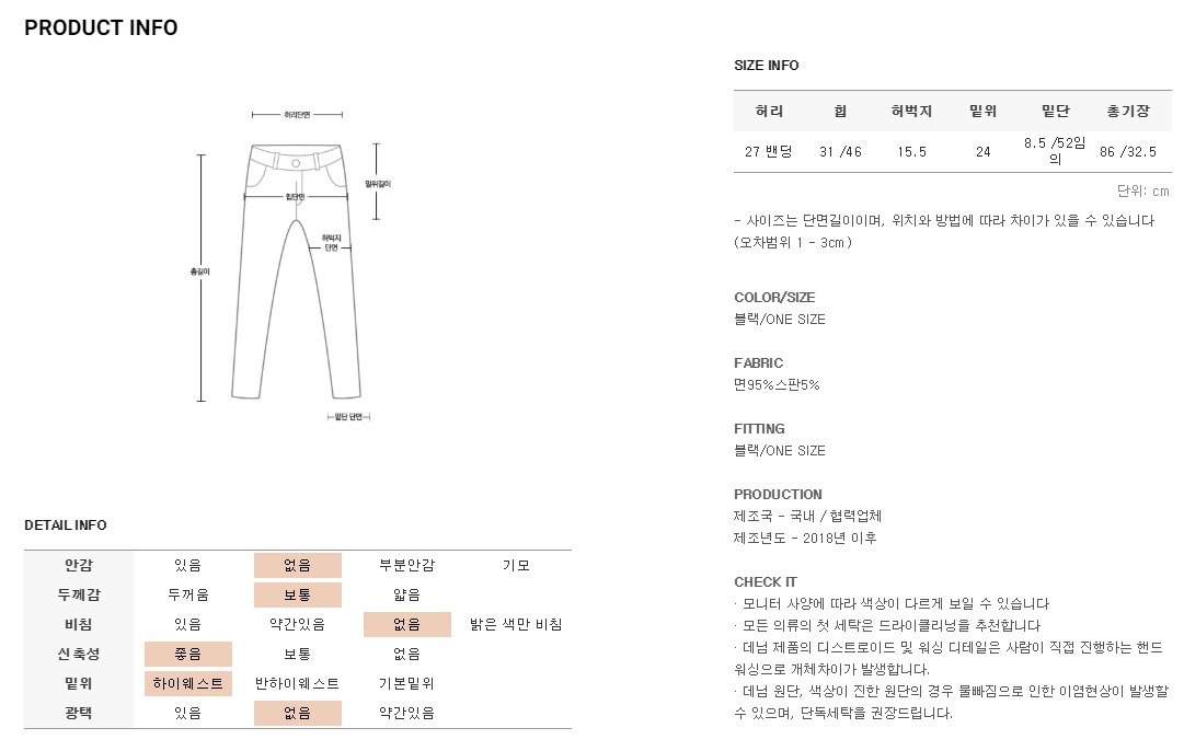 전체 허리밴딩과 신축성 좋은 원단으로 사이즈 구애없이 착용가능해요