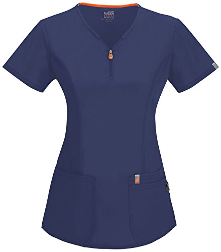 A contemporary fit mock wrap top features three patch pockets with a bungee i.D. Loop, double princess seams, a flattering belt at the waist, signature mesh binding at the back neck, double needle stitching and a shirttail hem. Center back length: 26 inch