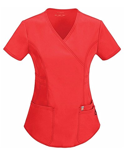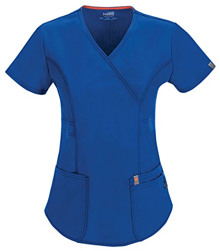 Contemporary fit mock wrap top features three patch pockets