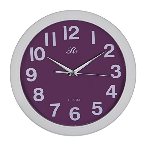 3.This plastic-framed wall clock measures 12 inches in diameter.Large Arabic Numerals and glass front cover guarantee good view.