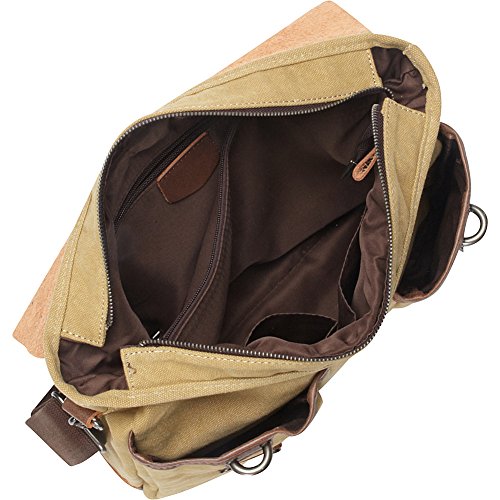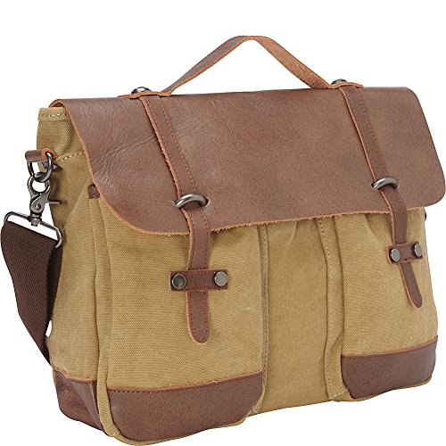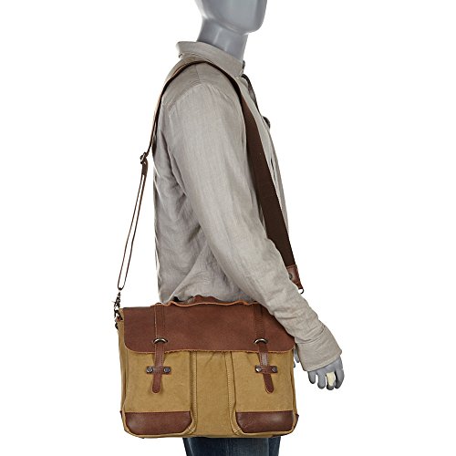 -. Title : Vagabond Traveler Casual Style Cowhide Leather Cotton Canvas Messenger Laptop