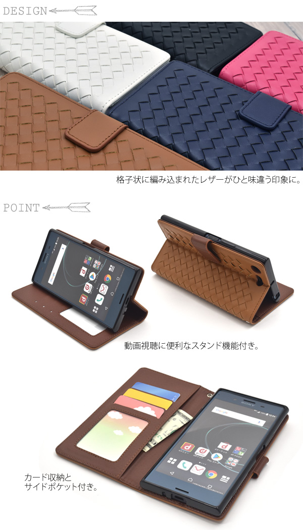 ラティス(格子)デザインのXperia XZ Premium SO-04J用レザーデザインケースポーチ。