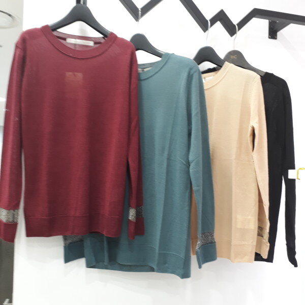 라운드 니트 도톰가운데얇은거 원하시는분들강추~ 소매는 펄 ~~ 은사 금사 들어간 시스루예요~~ 포인트 예쁘죠~~ 편안하게 베이직 하게 입길원하시는분들~~ ㅇ 꼭 선택 하세요 총기장67cm