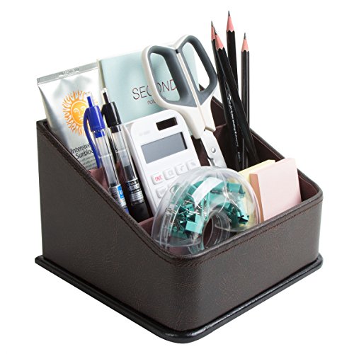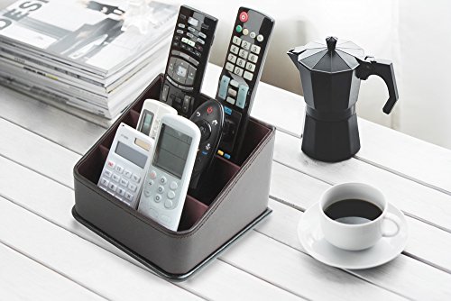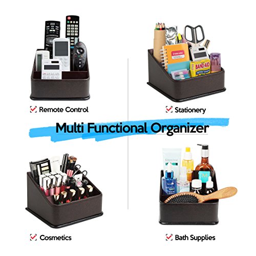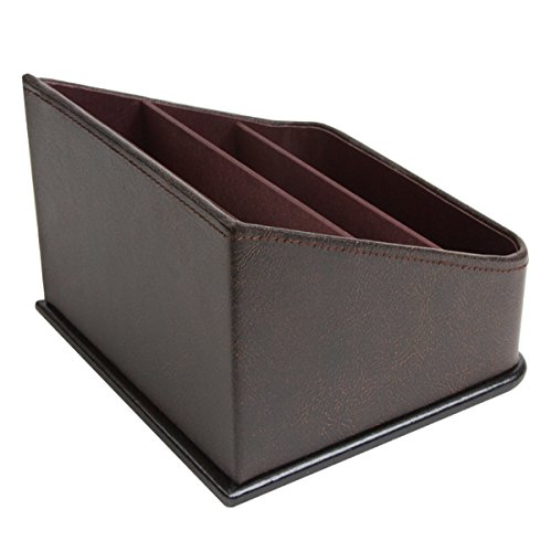 JackCubeDesign Leather Remote Control Organizer Holder, Controller TV Guide, Media Storage Box with 3 Compartments(Brown) - MK122
