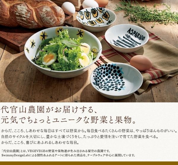 大胆な野菜の柄が絵変わりで楽しめる器のセット。新鮮なサラダを取り分けて食卓に笑顔を。
