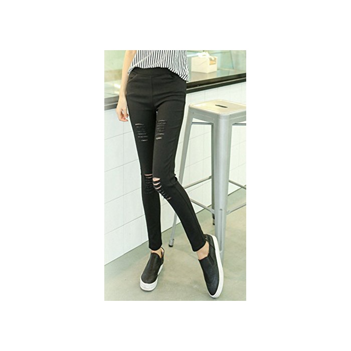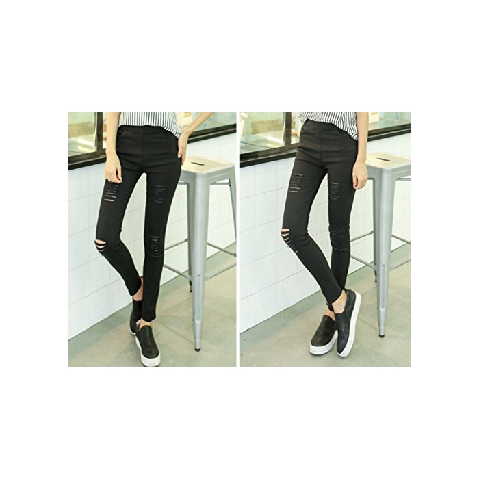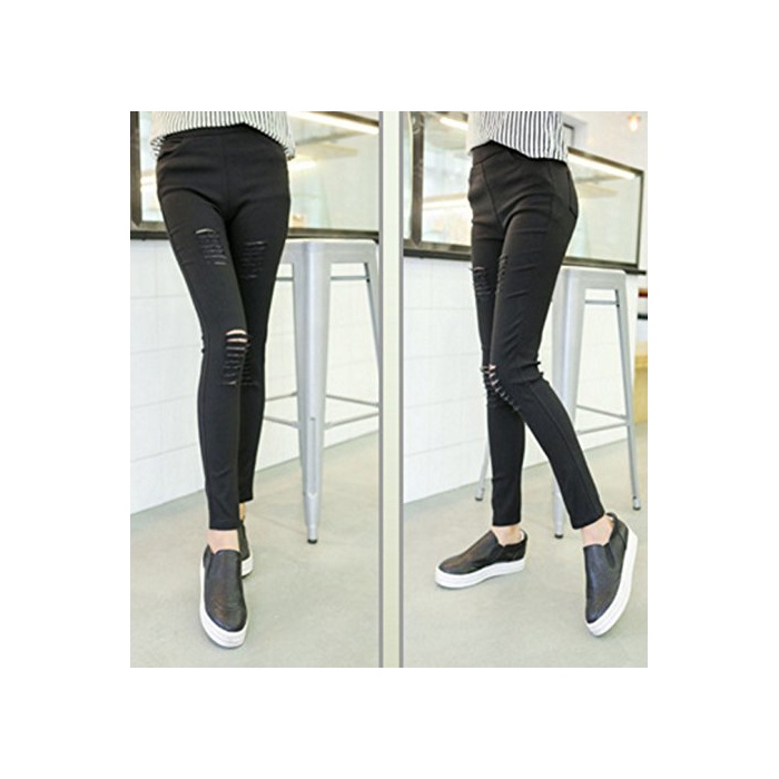 원본상품명: (ペプ) PEPU ダメジ加工 ジンズ デニム 風 レギンス パンツ スパッツ 穴あき ストレッチ レディス カジュアル (ブラック M)