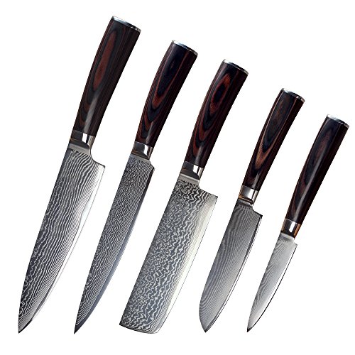 -. Title : XYJダマスカスキッチンナイフ5個セット73 Layers vg10 Japaneseスチール刃カラー木製ハンドル料理ナイフ
