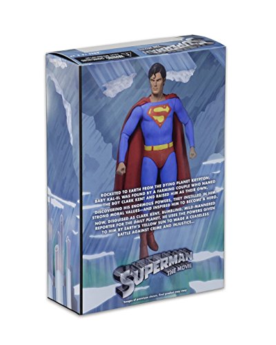 Feature : Includes 7 inch scaled action figure, fabric cape, and interchangeable hands. / Limited Edition Exclusive Neca figure depicts Christopher Reeve from Superman: The Movie. / Collector friendly window box packaging