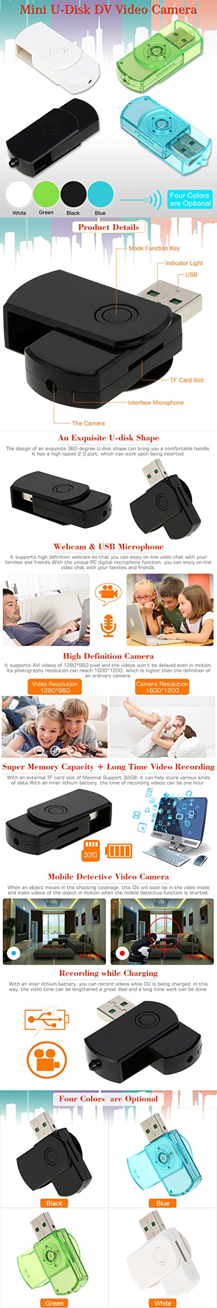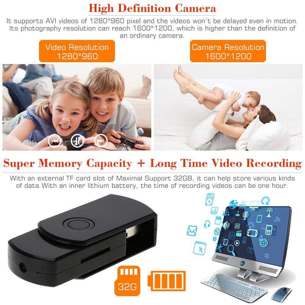 This ultra-compact U disk body, high-definition digital video, camera in a new generation of mini digital DV equipped with, to create a video, make a recording, so that you can perform monitoring work in all aspects.