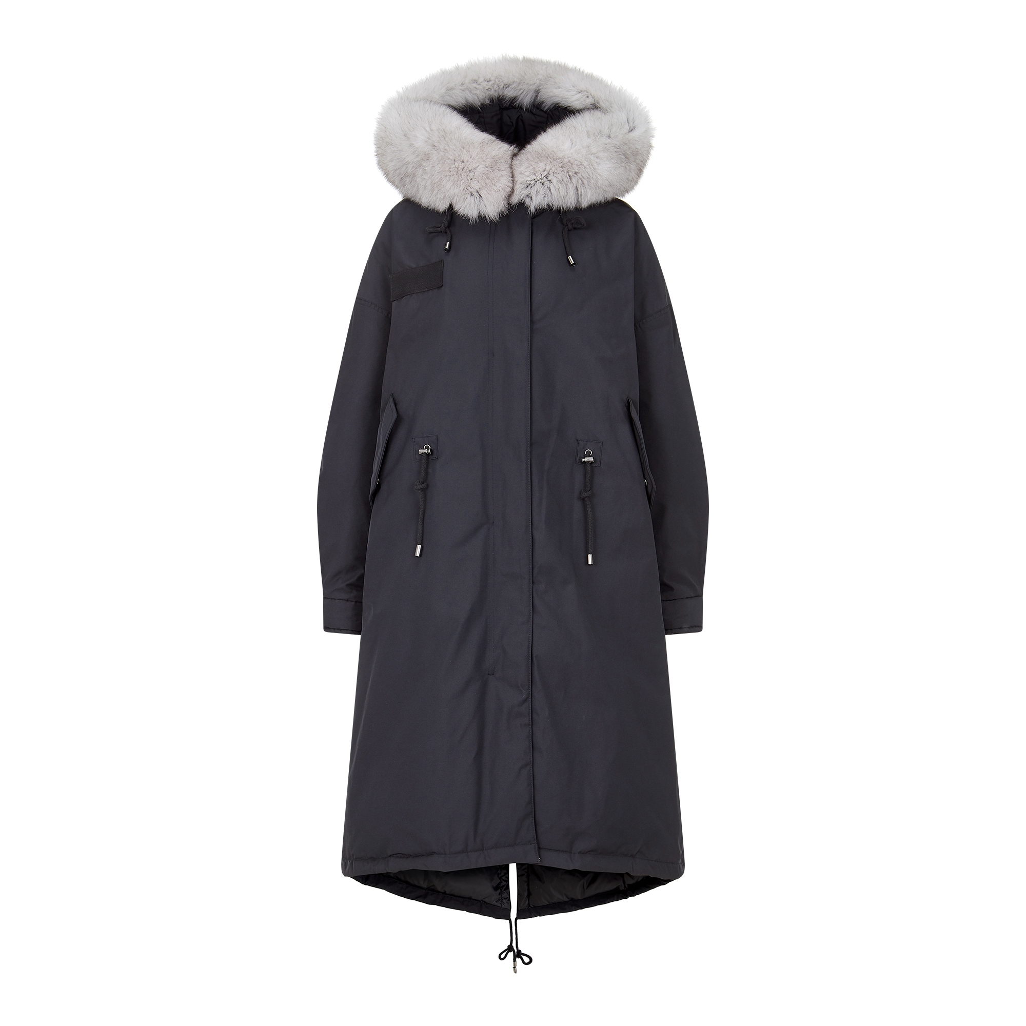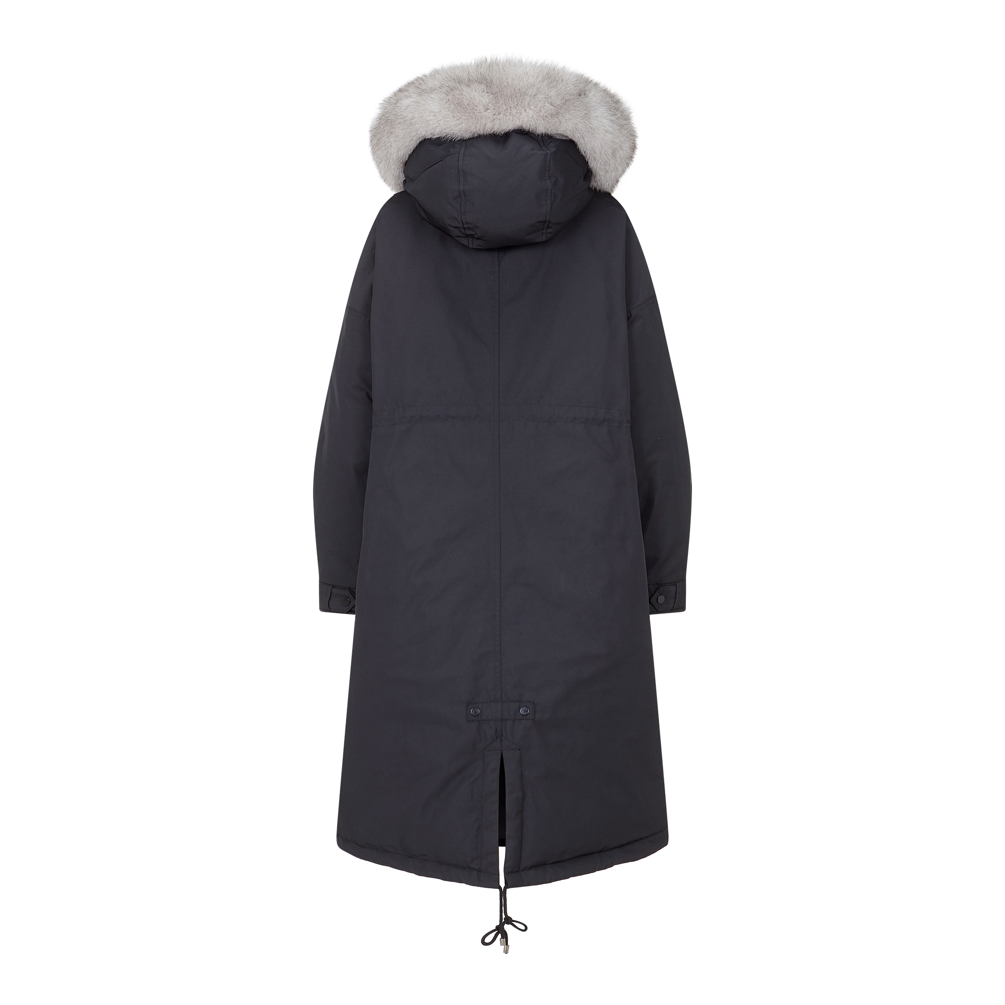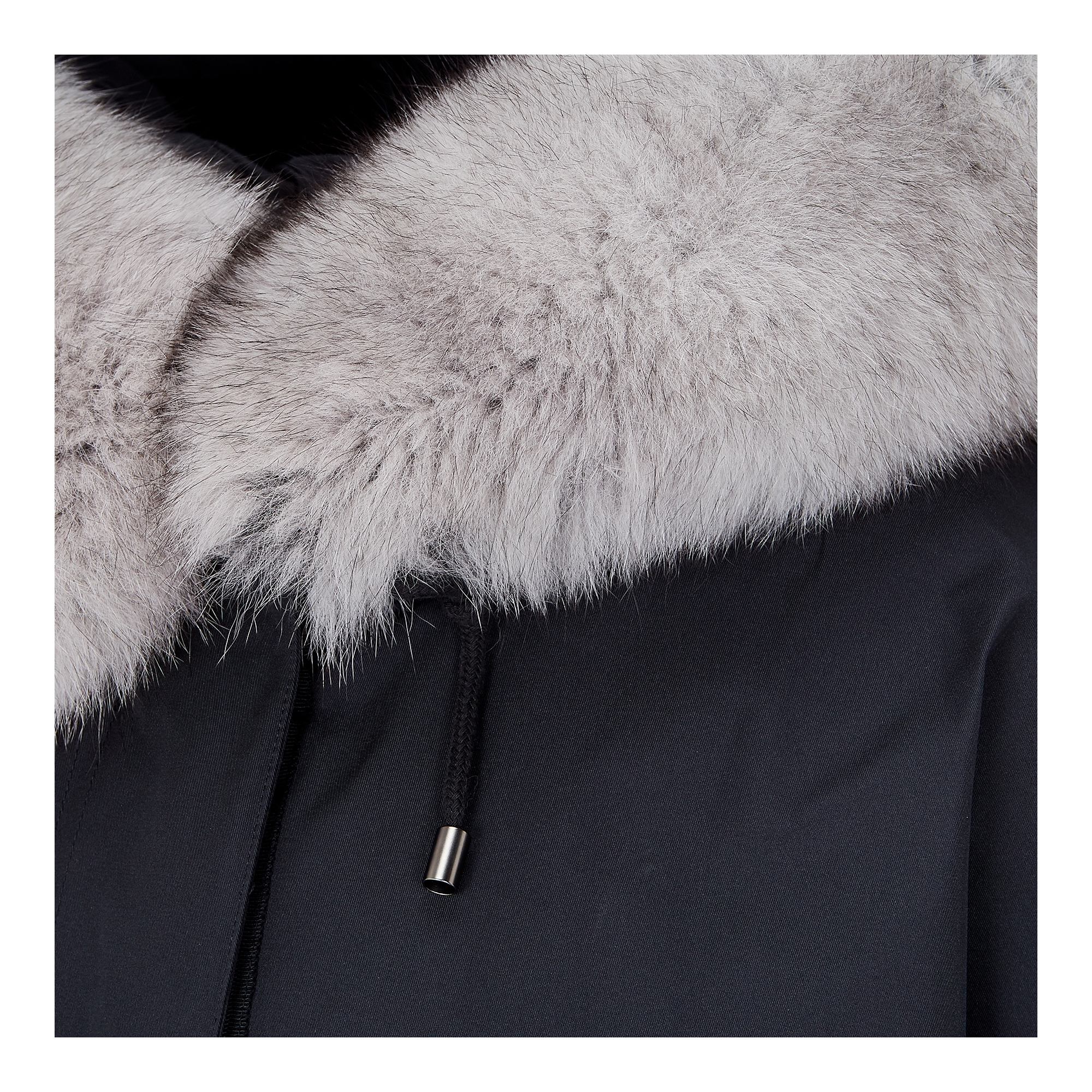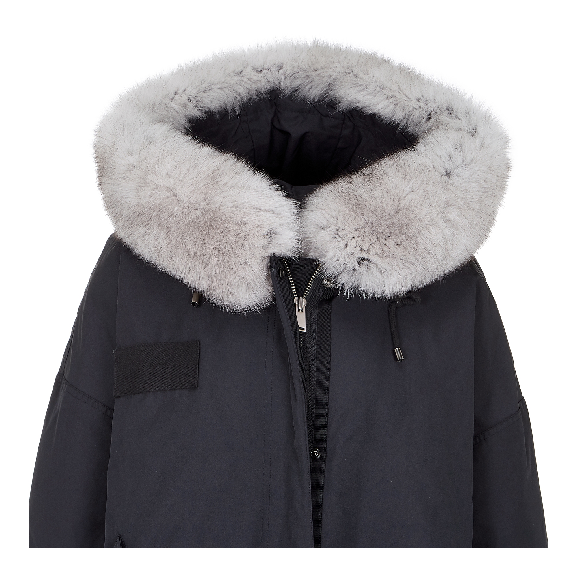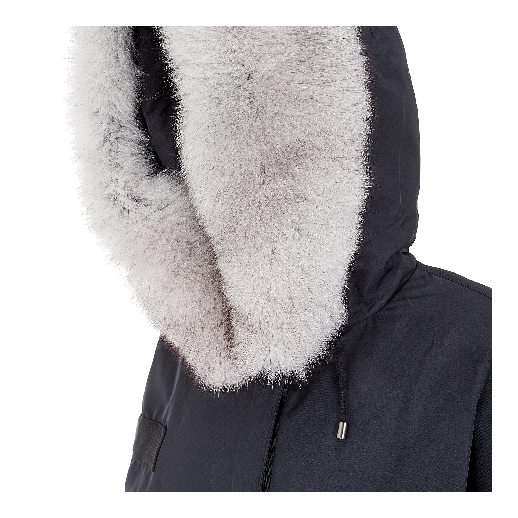 소재:겉감: 폴리에스터 100%, 배색: 여우털 100%, 안감: 폴리에스터 100%, 충전재: 거위솜털 80%, 거위깃털 20%