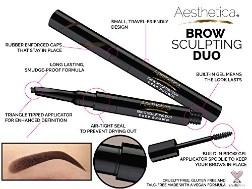 The Aesthetica Brow Sculpting Duo is a dual-purpose, travel-friendly brow definer with major payoff. It can be your constant companion for midday touch-ups and ramping up your look at a moment's notice.