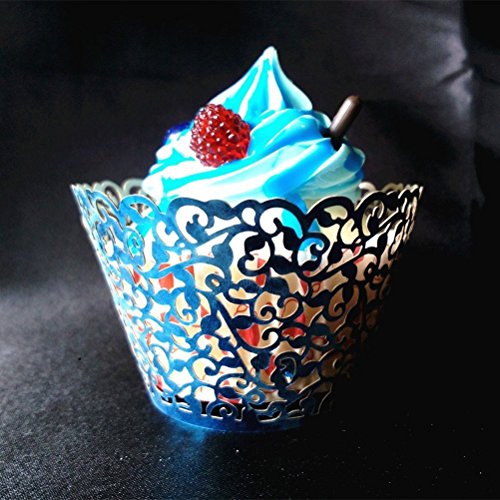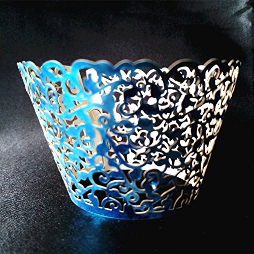 Tinksky 60pcs Cupcake Wrapper Wraps Liner Vine Filigree Lace Wedding Party Cake Decoartion (Dark Blue)