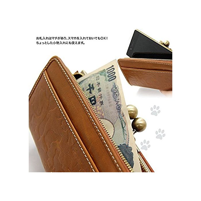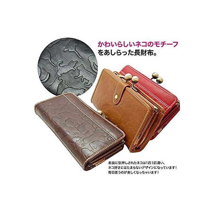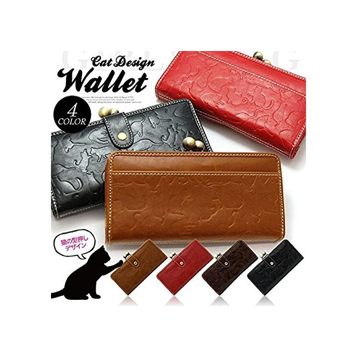 원본상품명: ネコ型押し 猫 がま口 長財布 Paquet du Cadeau パケカド レッドRE
