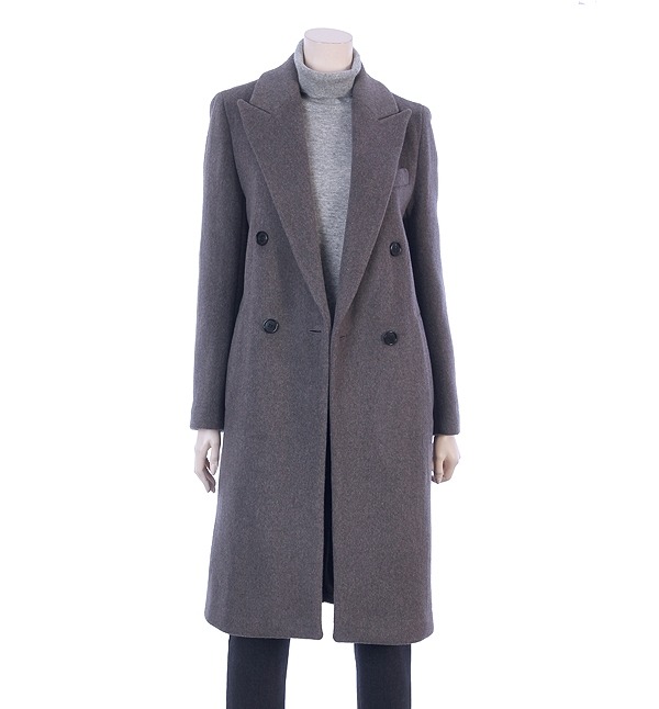 SHES MISS, 베이직한 디자인으로 깔끔하여 클래식한 분위기를 연출하는 더블버튼 모직 하프코트입니다