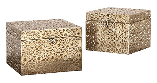 Urban Designs 7717544 Champagne 2Piece Metal Keepsake Decorative Box Gold