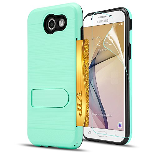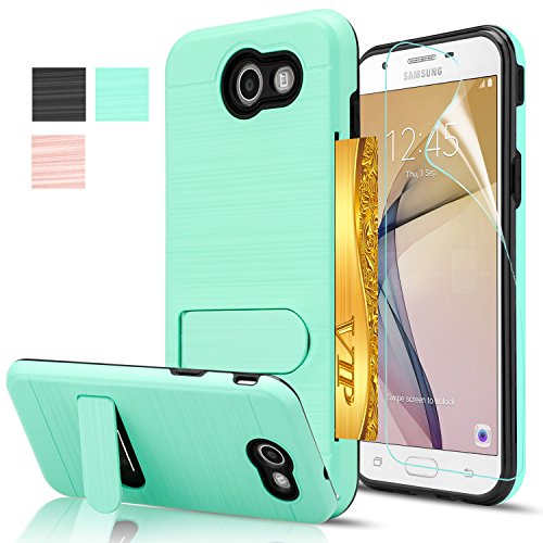 Galaxy J7 V Case,Galaxy J7 Sky Pro/J7 Perx/J7V 2017/Halo/J7 Prime Case with Screen Protector,AnoKe[Card Slots Wallet Holder]Kickstand Plastic TPU Shockproof Case For Samsung Galaxy J7 2017 KC1 Mint