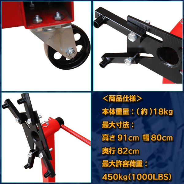 最大許容荷重:450kg(1000LBS)