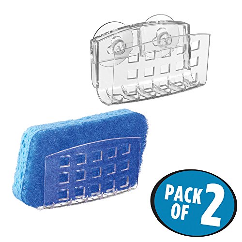 mDesign Kitchen Sink Suction Holder for Sponges, Scrubbers, Soap - Pack of 2, Clear